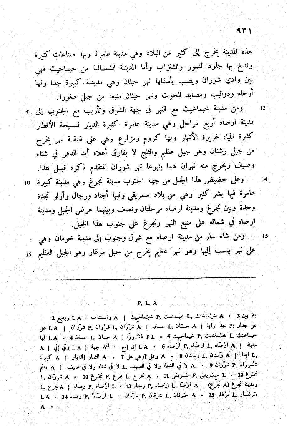 ومن شاء سار من مدينة ارصاه مع شرق وجنوب إلى مدينة خرمان وهي على نهر ينسب إليها وهو نهر عظيم يخرج من جبل مرغار وهو الجبل العظيم