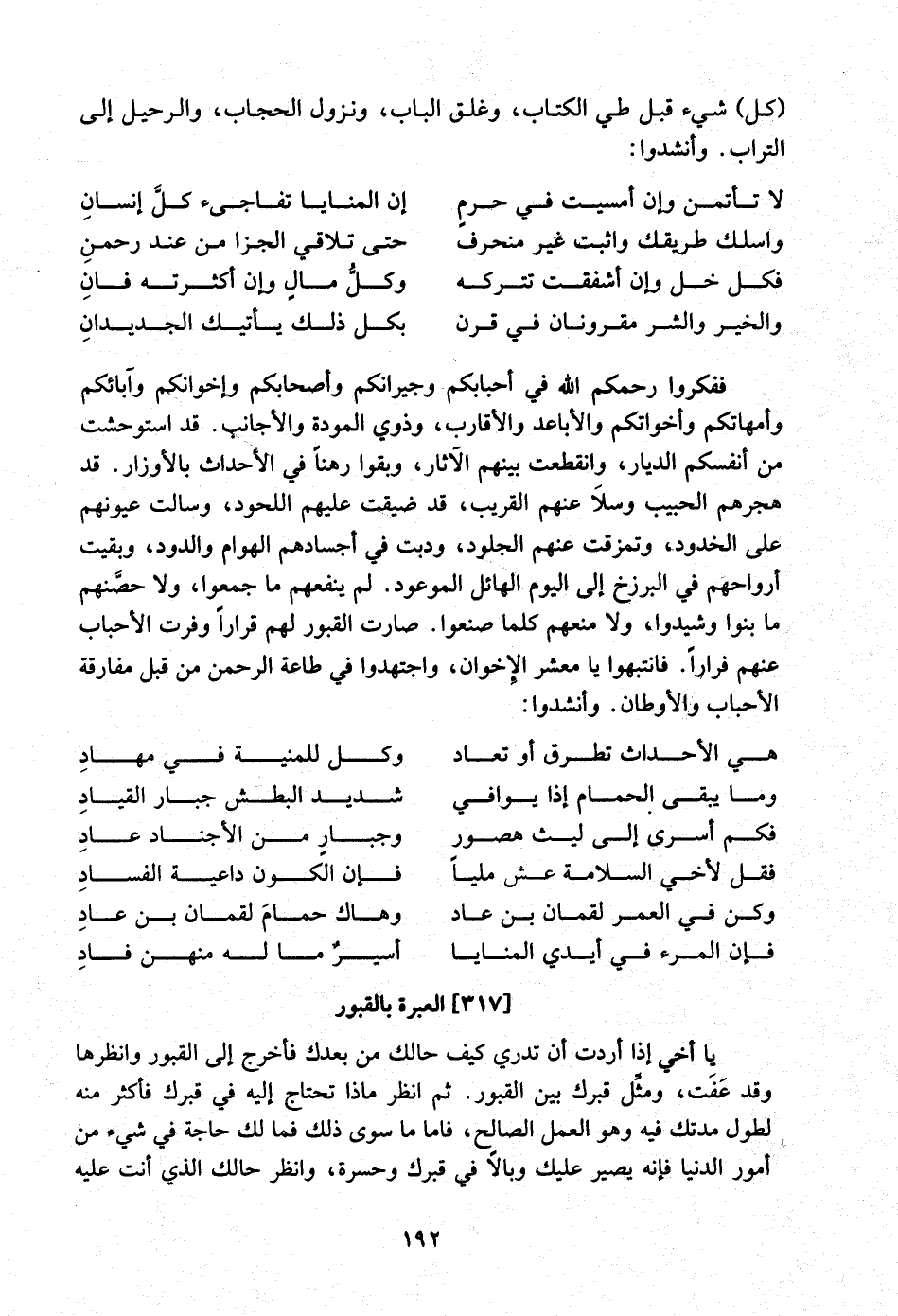 فانتبهوا يَا معشر الإخوان واجتهدوا فِي طَاعَة الرَّحْمَن من قبل مُفَارقَة الأحباب والأوطان
