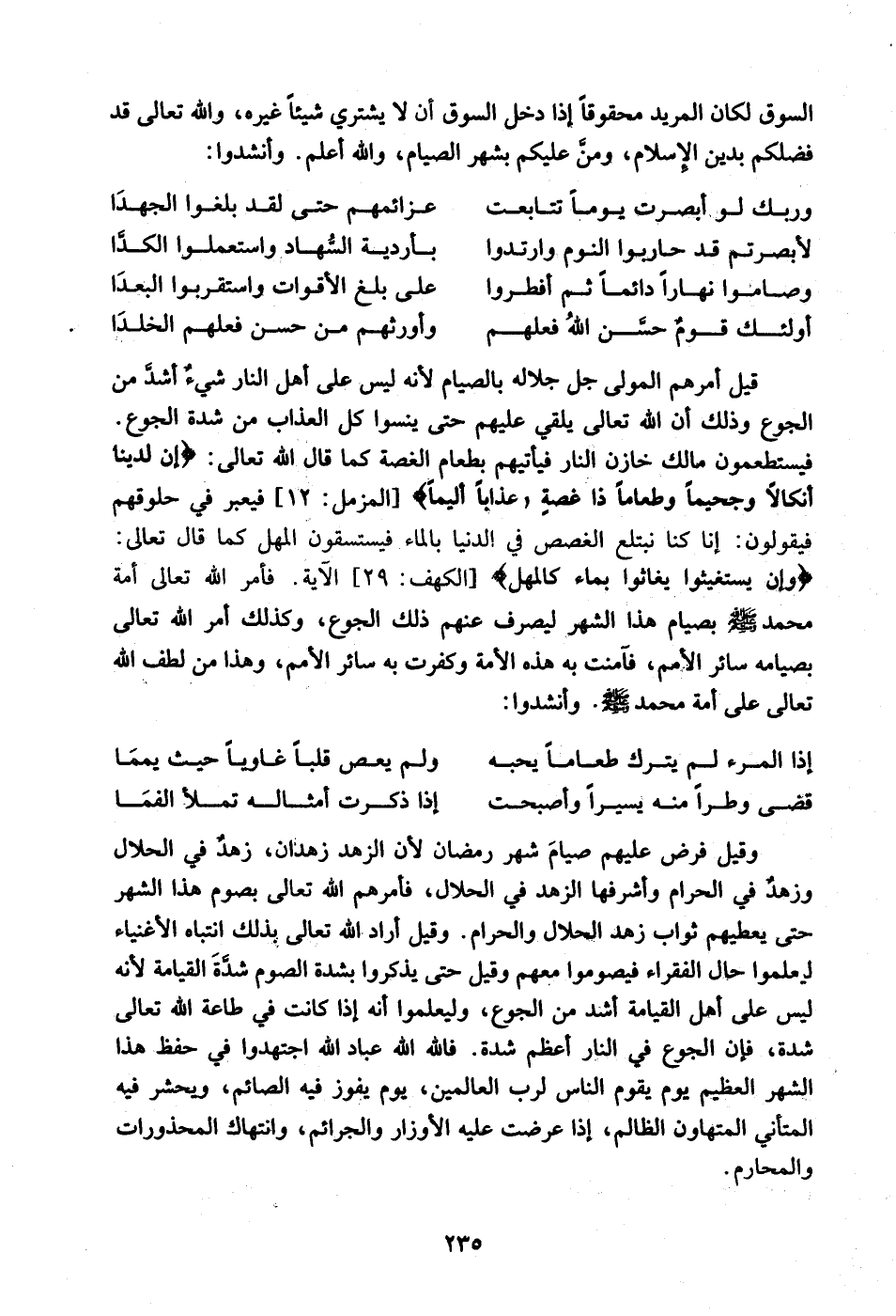 السُّوق لَكَانَ المريد محقوقا إِذا دخل السُّوق أَن لَا يَشْتَرِي شَيْئا غَيره وَالله تَعَالَى قد فَضلكُمْ بدين الْإِسْلَام وَمن عَلَيْكُم بِشَهْر الصّيام وَالله أعلم