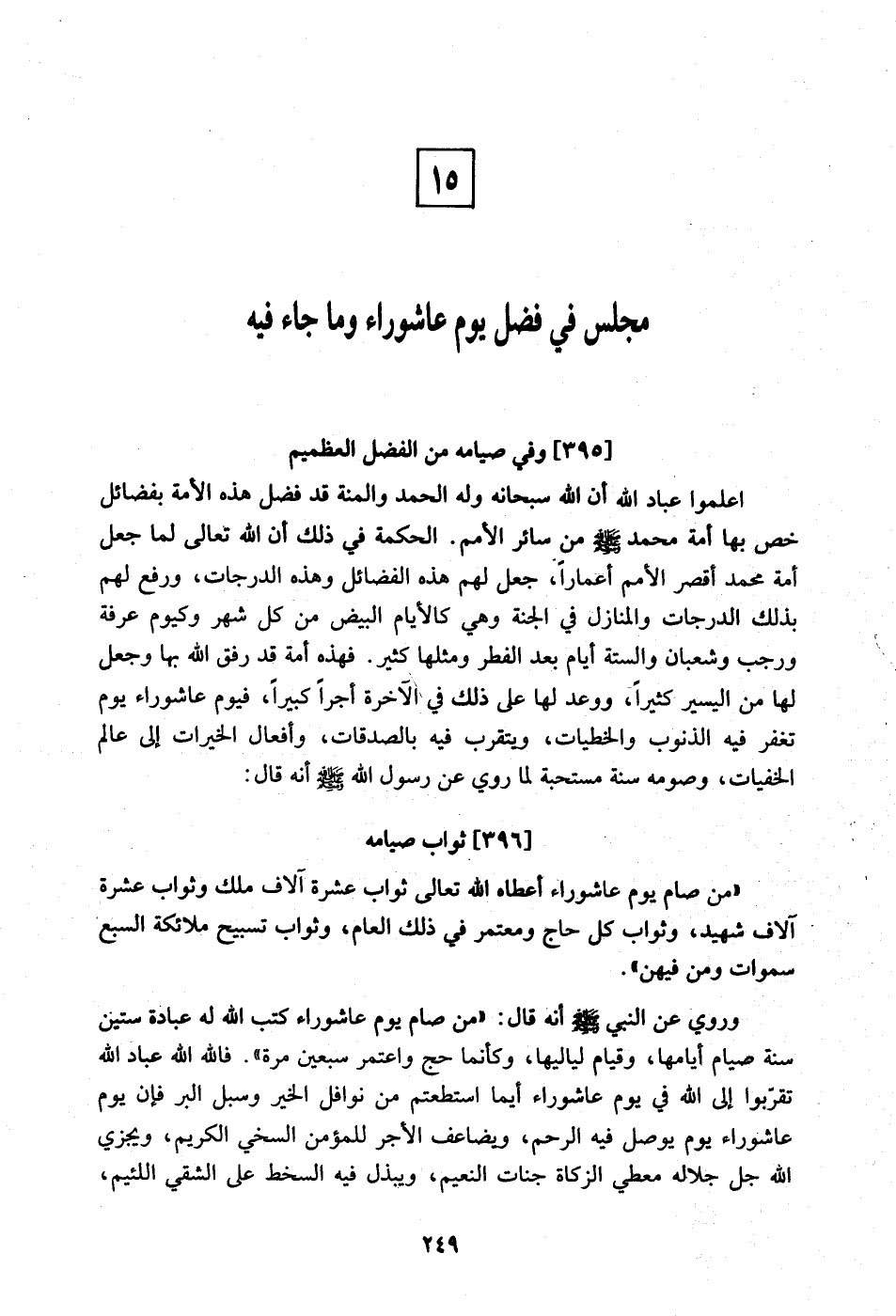 فَالله الله عباد الله تقربُوا إِلَى الله فِي يَوْم عَاشُورَاء أَيّمَا اسْتَطَعْتُم من نوافل الْخَيْر وسبل الْبر فَإِن يَوْم عَاشُورَاء يَوْم يُوصل فِيهِ الرَّحِم ويضاعف الْأجر لِلْمُؤمنِ السخي الْكَرِيم ومجزي الله جلّ جَلَاله معطي الزَّكَاة جنَّات النَّعيم ويبذل فِيهِ السخط على الشقي اللَّئِيم