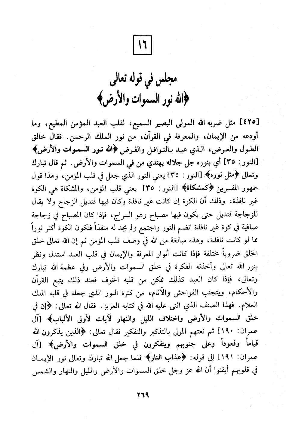 16 - مجْلِس فِي قَوْله تَعَالَى {الله نور السَّمَاوَات وَالْأَرْض}