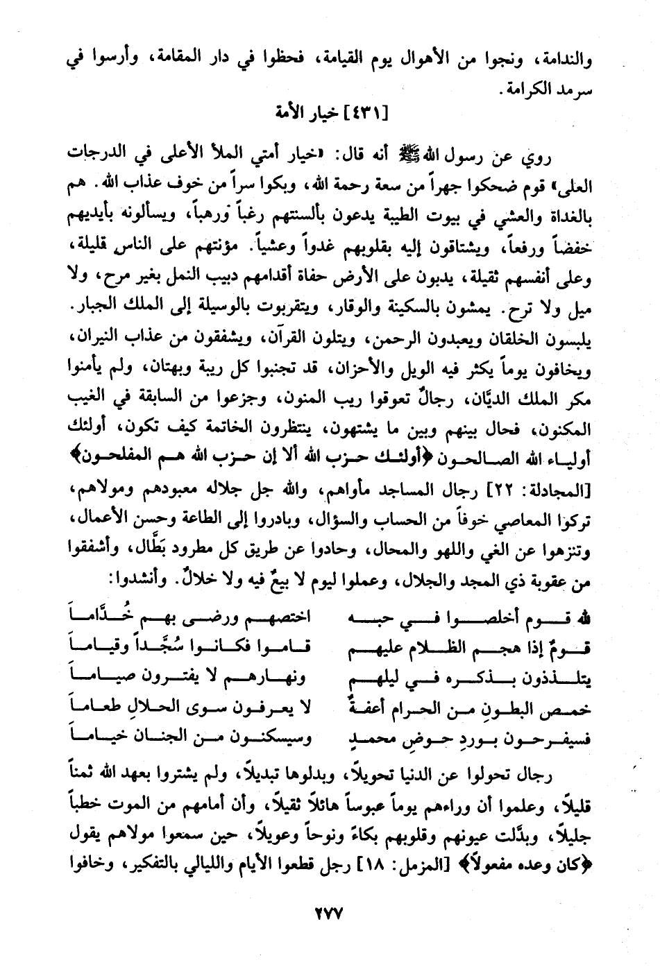 277 - والندامة ونجوا من الْأَهْوَال يَوْم الْقِيَامَة فحظوا فِي دَار المقامة وأرسوا فِي سرمد الْكَرَامَة