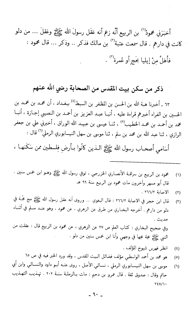 ذِكْرُ مَنْ سَكَنَ بَيْتَ الْمَقْدِسِ مِنَ الصَّحَابَةِ رَضِيَ اللَّهُ عَنْهُمْ