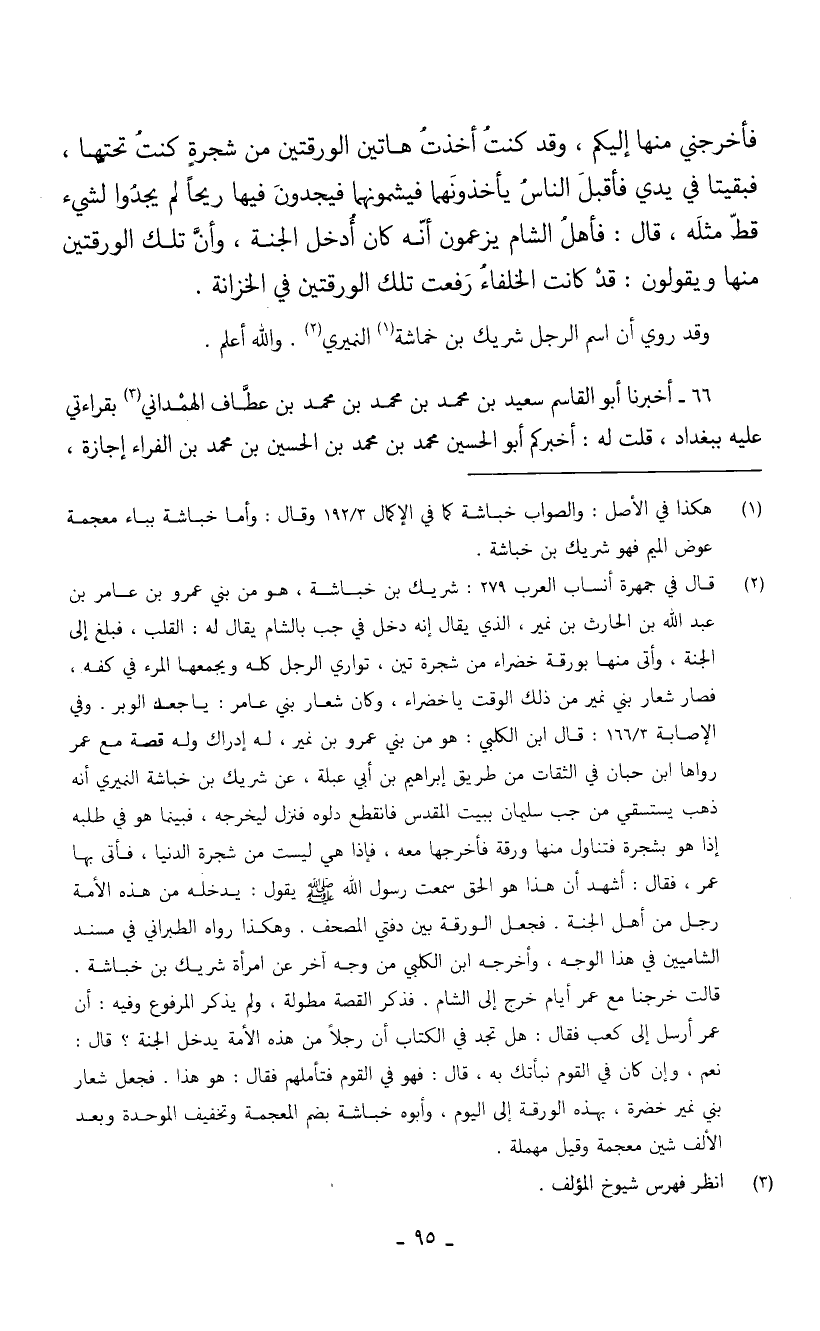 وَقَدْ رُوِيَ أَنَّ اسْمَ الرَّجُلِ شَرِيكُ بْنُ خَمَاشَةَ النُّمَيْرِيُّ وَاللَّهُ أَعْلَمُ