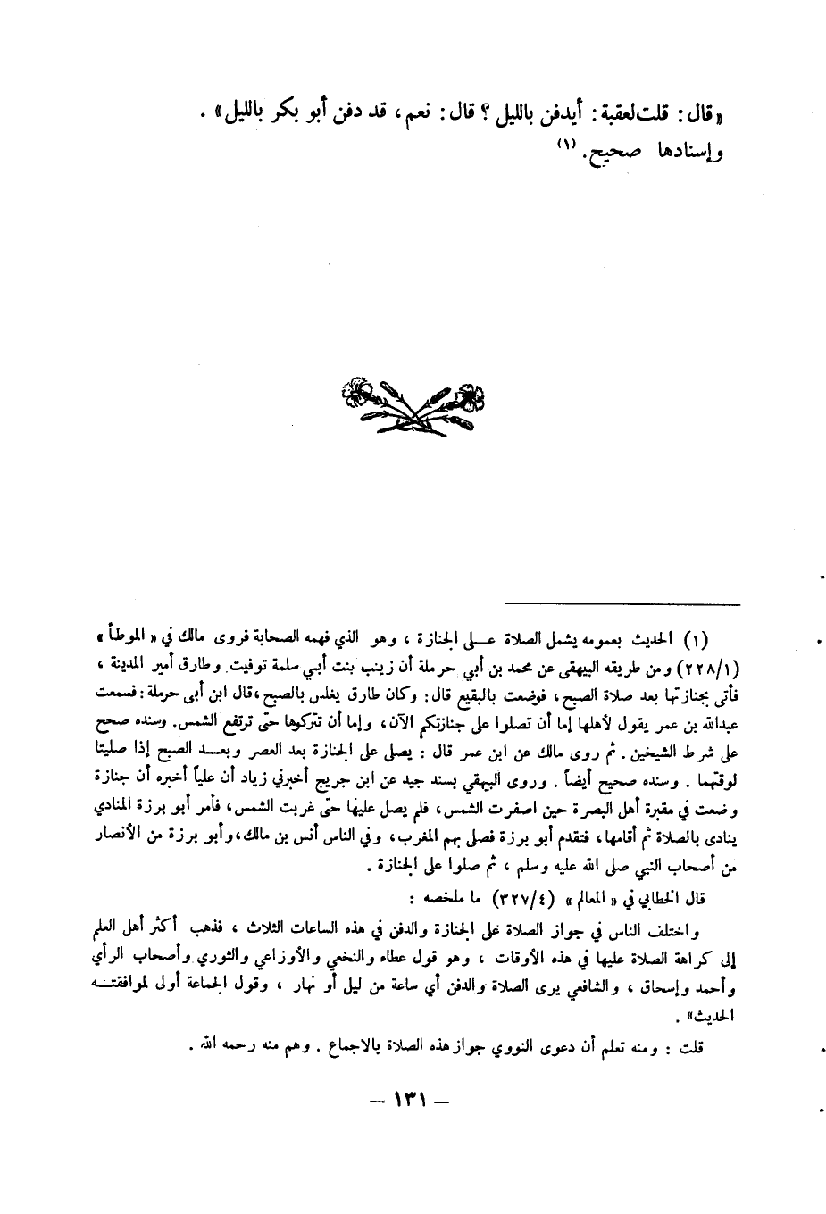 (1) الحديث بعمومه يشمل الصلاة على الجنازة، وهو الذي فهمه الصحابة فروي مالك في " الموطأ " (1/ 228) ومن طريقه البيهقي عن محمد بن أبي حرملة أن زينب بنت أبي سلمة توفيت وطارق أمير المدينة، فأتي بجنازتها بعد صلاة الصبح، فوضعت بالبقيع قال: وكان طارق يغلس بالصبح، قال ابن أبي حرملة: فسمعت عبد الله بن عمر يقول لاهلا إما أن تصلوا على جنازتكم الان، وإما أن تتركوها حتى ترتفع الشمس، وسنده صحح على شرط الشيخين. ثم روى مالك عن ابن عمر قال: يصلى على الجنازة بعد العصر وبعد الصبح إذا صليتا لوقتهما. وسنده صحيح أيضا. وروى البيهقي بسند جيد عن ابن جريج أخبرني زياد أن عليا أخبره أن جنازة وضعت في مقبرة أهل البصرة حين اصفرت الشمس، فلم يصل عليها حتى غربت الشمس: فأمر أبو برزة المنادي ينادي بالصلاة ثم أقامها، فتقدم أبو برزة فصلى بهم المغرب، وفي الناس أنس بن مالك، وأبو برزه من الانصار من أصحاب النبي صلى الله عليه وسلم، ثم صلوا على الجنازة.