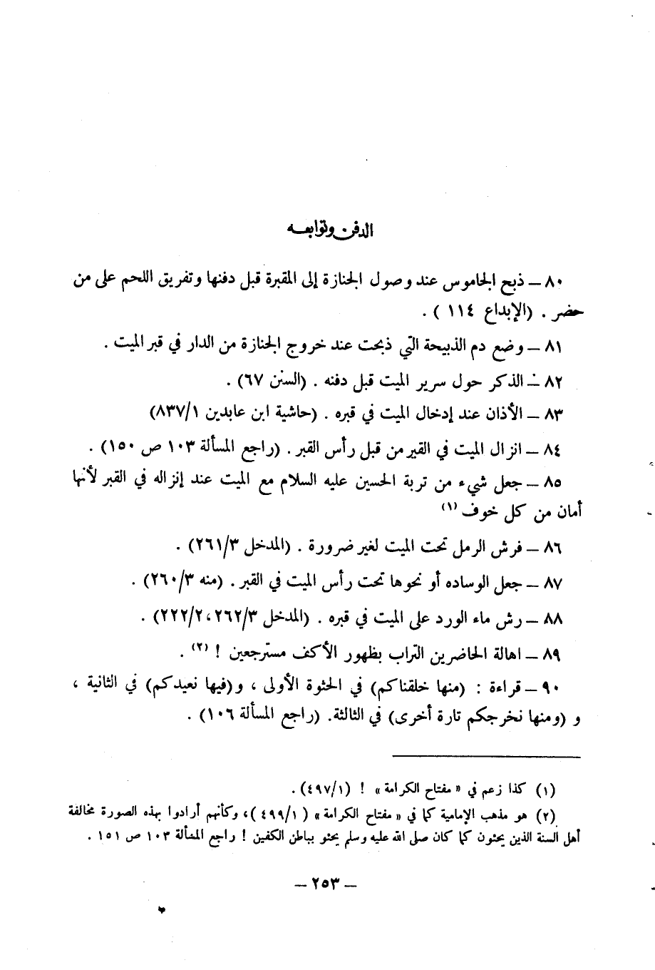84 - انزال الميت في القير من قبل رأس القبر. (راجع المسألة 103 ص 150).