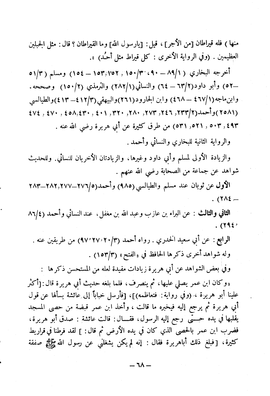 وفي بعض الشواهد عن أبي هريرة زيادات مفيدة لعله من المستحسن ذكرها:
