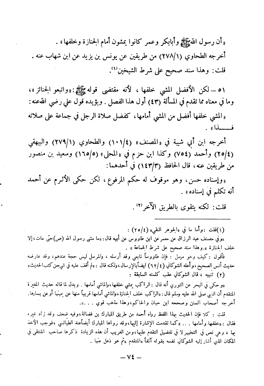 (1) قلت: وأما ما في " الجوهر النقي " (4/ 25): " وفي مصنف عبد الرزاق عن معمر عن ابن طاووس عن أبيه قال: " ما مشى رسول الله صلى الله عليه وسلم حتى مات، إلا خلف الجنازة ". وهذا سند صحيح على شرط الجماعة ".