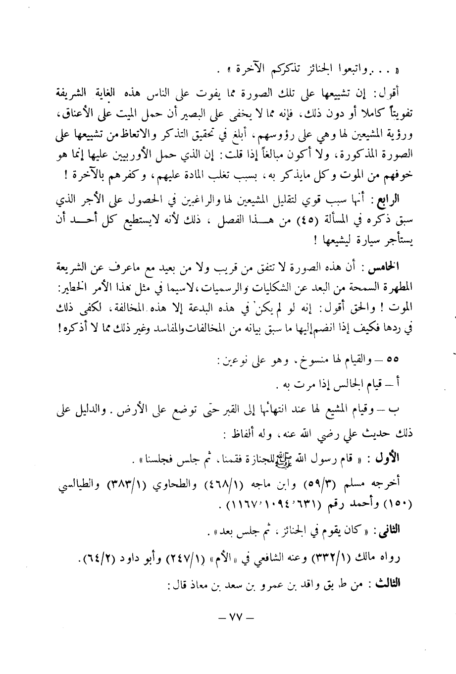 الرابع: أنها سبب قوي لتقليل المشيعين لها والراغبين في الحصول على الاجر الذي سبق ذكره في المسألة (45) من هذا الفصل، ذلك لانه لايستطيع كل أحد أن يستأجر سيارة ليشيعها "