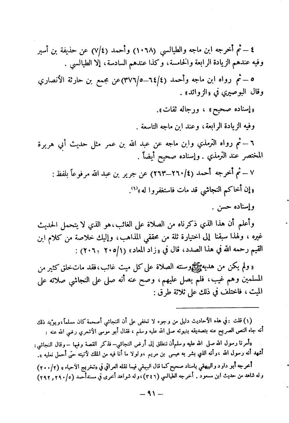 7 - ثم أخرجه أحمد (4/ 264 - 263) عن جرير بن عبد الله مرفوعا بلفظ " إن أخاكم النجاشي قد مات فاستغفروا له (1).