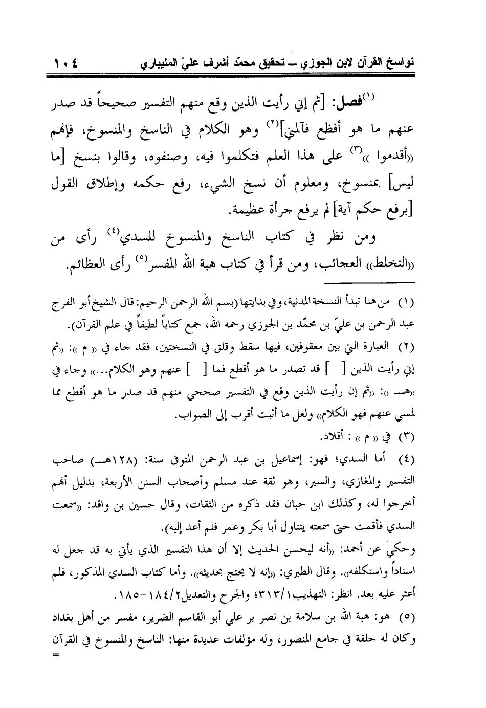 ومن نظر في كتاب الناسخ والمنسوخ للسدي4 رأى من (التخلط) العجائب، ومن قرأ في كتاب هبة الله المفسر5 رأى العظائم.