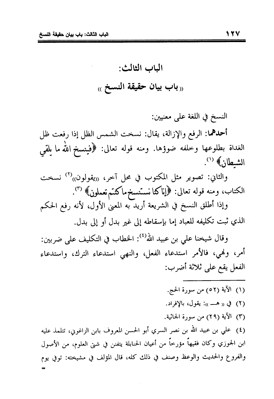 الْبَابُ الثَّالِثُ: بَابُ بَيَانِ حَقِيقَةِ النَّسْخِ