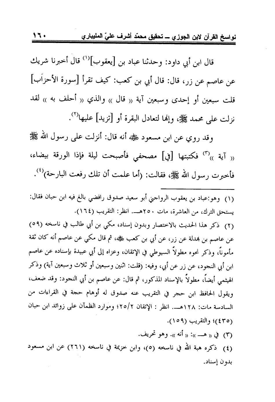 4 ذكره هبة الله في ناسخه (5)، وابن خزيمة في ناسخه (261) عن ابن مسعود بدون إسناد.