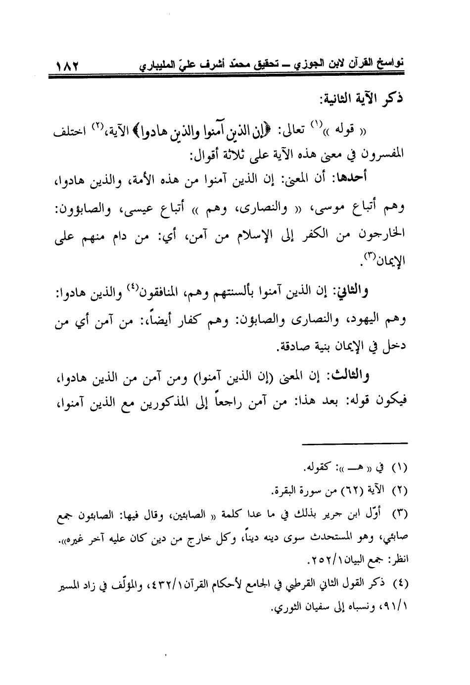 4 ذكر القول الثاني القرطبي في الجامع لأحكام القرآن1/ 432، والمؤلّف في زاد المسير1/ 91، ونسباه إلى سفيان الثوري.