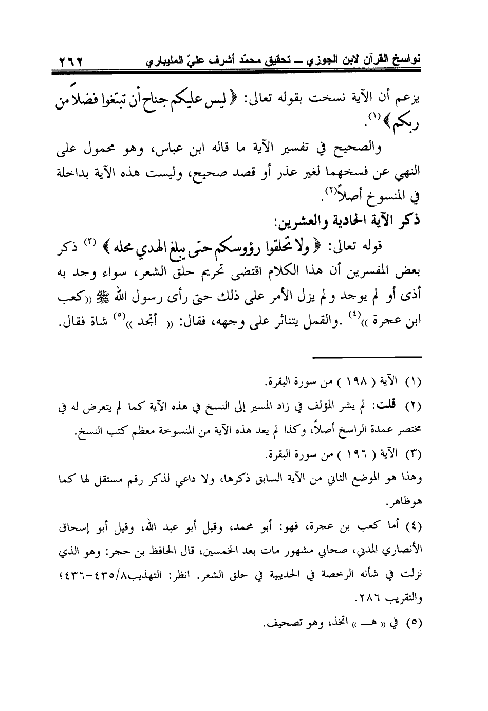 ذِكْرُ الْآيَةِ الْحَادِيَةَ وَالْعِشْرِينَ: قوله تعالى: {وَلا تَحْلِقُوا رُؤُوسَكُمْ حَتَّى يَبْلُغَ الْهَدْيُ مَحِلَّهُ} 3