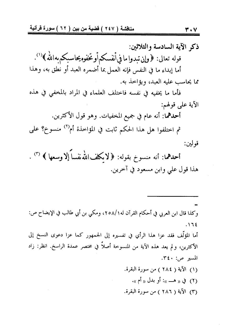 ثُمَّ اخْتَلَفُوا هَلْ هَذَا الْحُكْمُ ثَابِتٌ فِي الْمُؤَاخَذَةِ أَمْ2 مَنْسُوخٌ؟ عَلَى قَوْلَيْنِ: