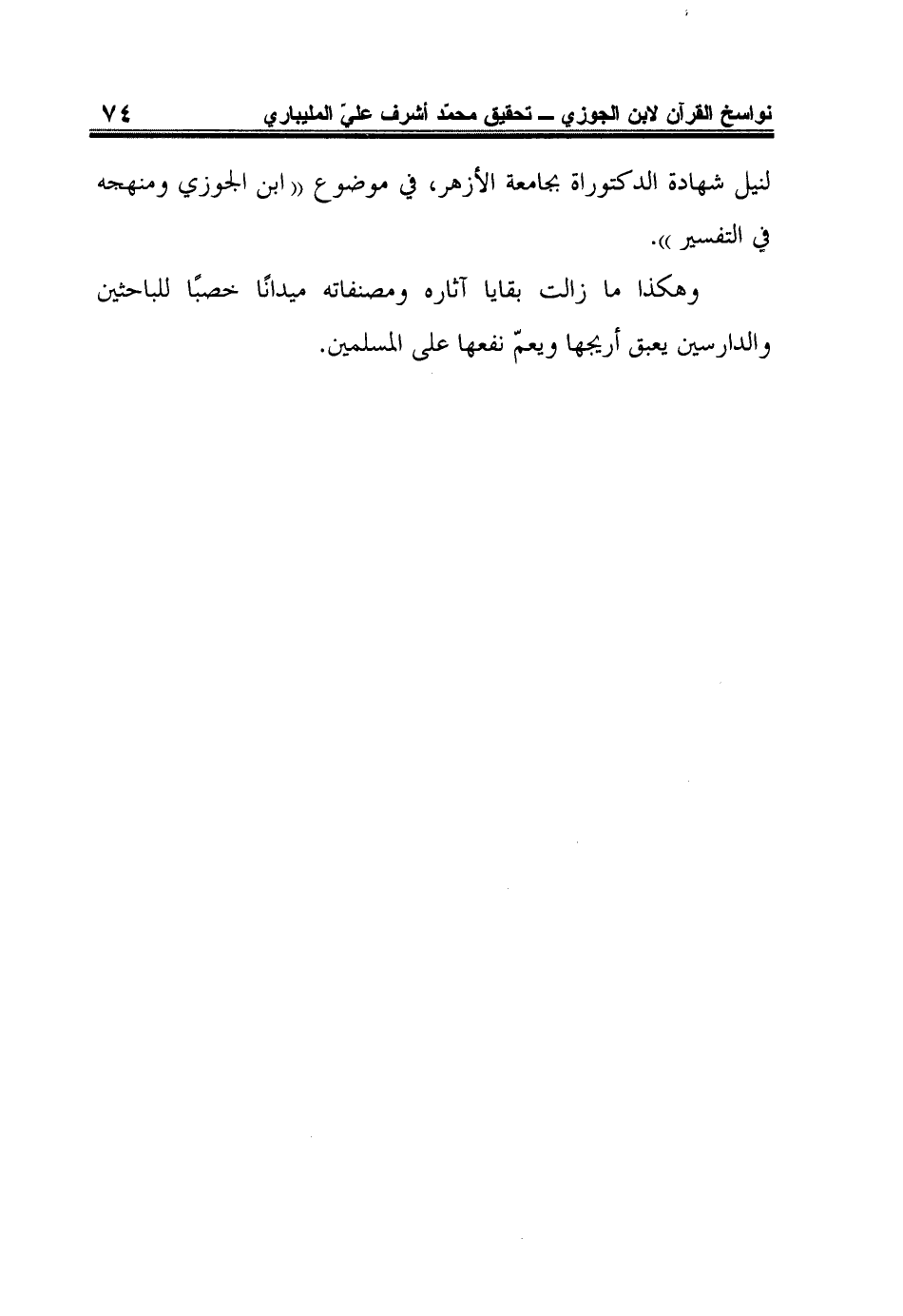 لنيل شهادة الدكتوراة بجامعة الأزهر، في موضوع (ابن الجوزي ومنهجه في التفسير).