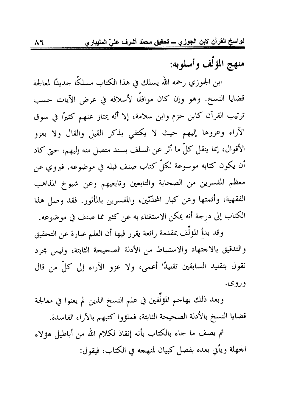 وبعد ذلك يهاجم المؤلِّفين في علم النسخ الذين لم يعنوا في معالجة قضايا النسخ بالأدلة الصحيحة الثابتة، فملؤوا كتبهم بالآراء الفاسدة.