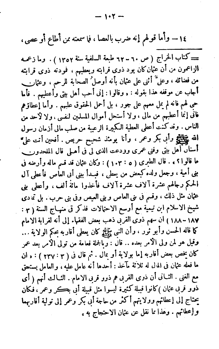 14 - وأما قولهم إنه ضرب بالعصا، فما سمعته ممن أطاع أو عصى، وإنما