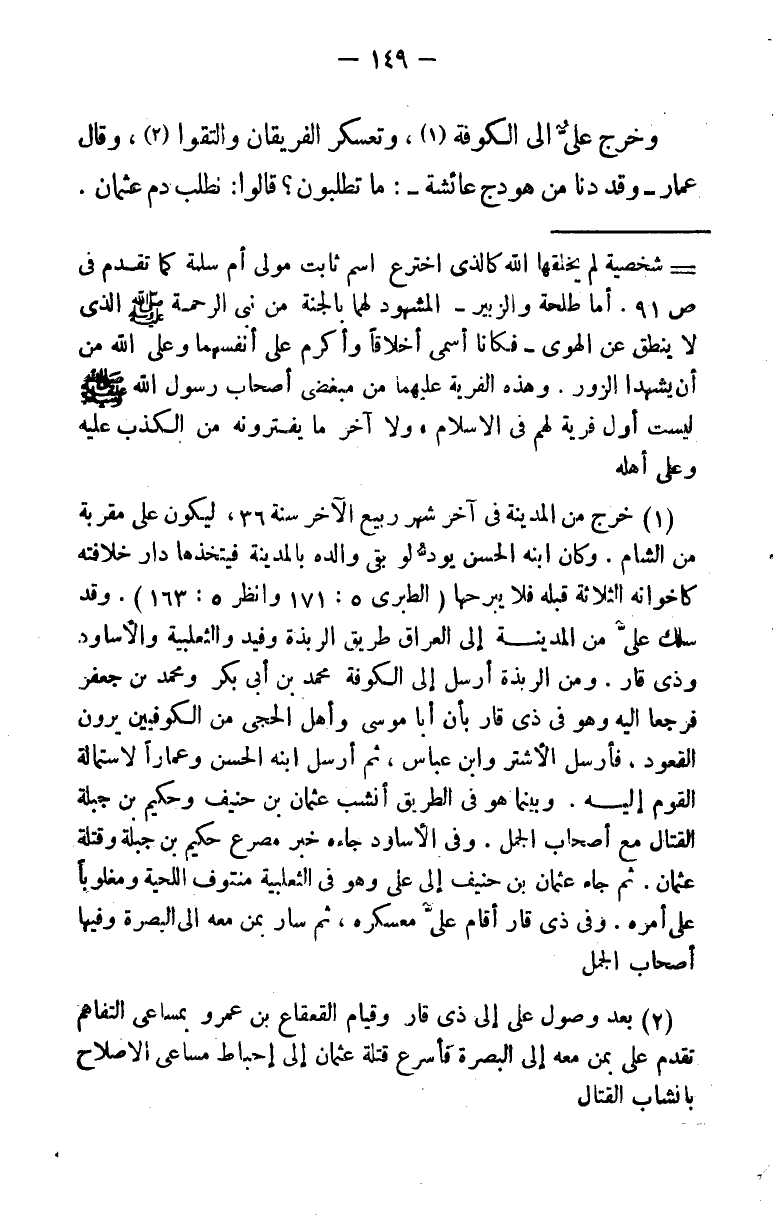 (¬2) بعد وصول علي إلى ذي قار وقيام القعقاع بن عمرو بمساعي التفاهم تقدم علي بمن معه إلى البصرة فأسرع قتلة عثمان إلى إحباط مساعي الإصلاح بإنشاب القتال.