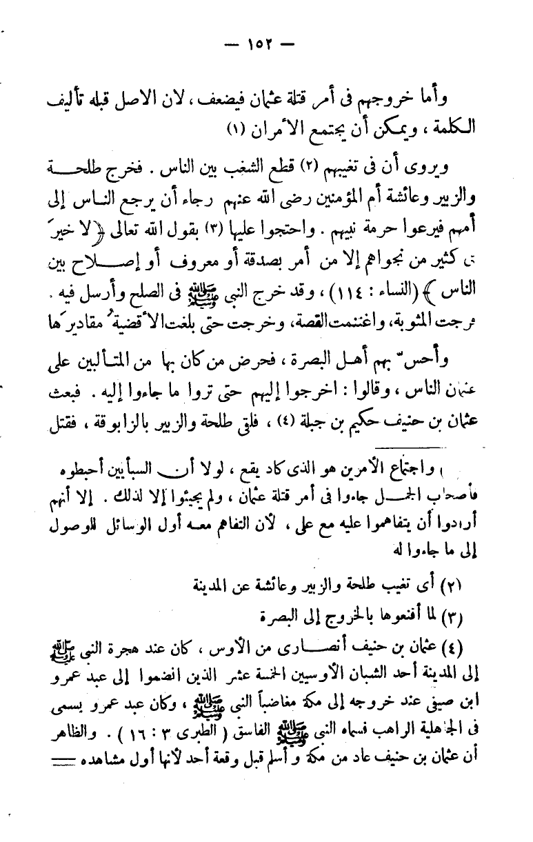 (¬1) واجتماع الأمرين هو الذي كاد يقع، لولا أن السبئيين أحبطوه. فأصحاب الجمل جاءوا في قتلة عثمان، ولم يجيئوا إلا لذلك. إلا أنهم أرادوا أن يتفاهموا عليه مع علي؛ لأن التفاهم معه أول الوسائل للوصول إلي ما جاءوا له.