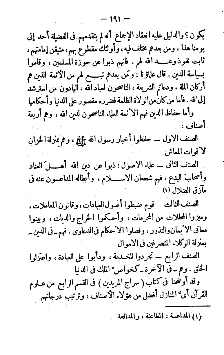 وأما حفاظ الدين فهم الأئمة العلماء الناصحون لدين الله، وهم أربعة أصناف: