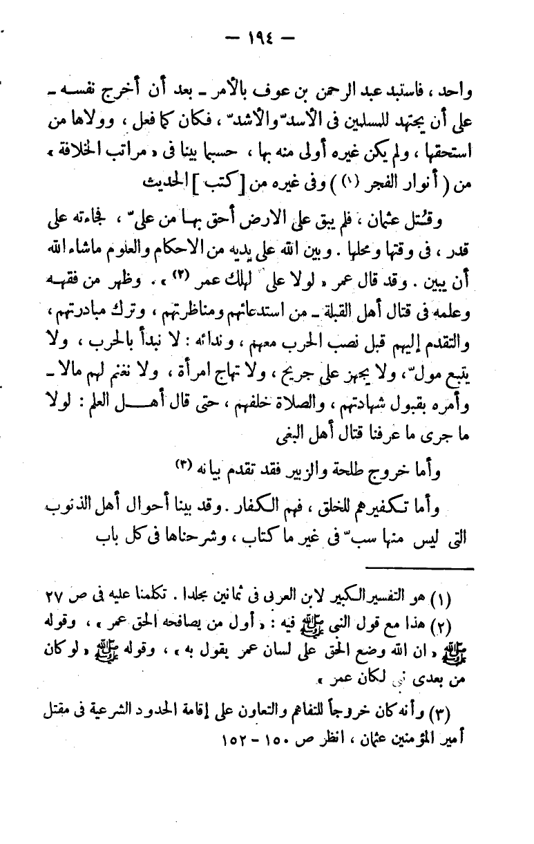 (¬3) وأنه كان خروجا للتفاهم والتعاون على إقامة الحدود الشرعية في مقتل أمير المؤمنين عثمان، انظر ص 150 - 152.