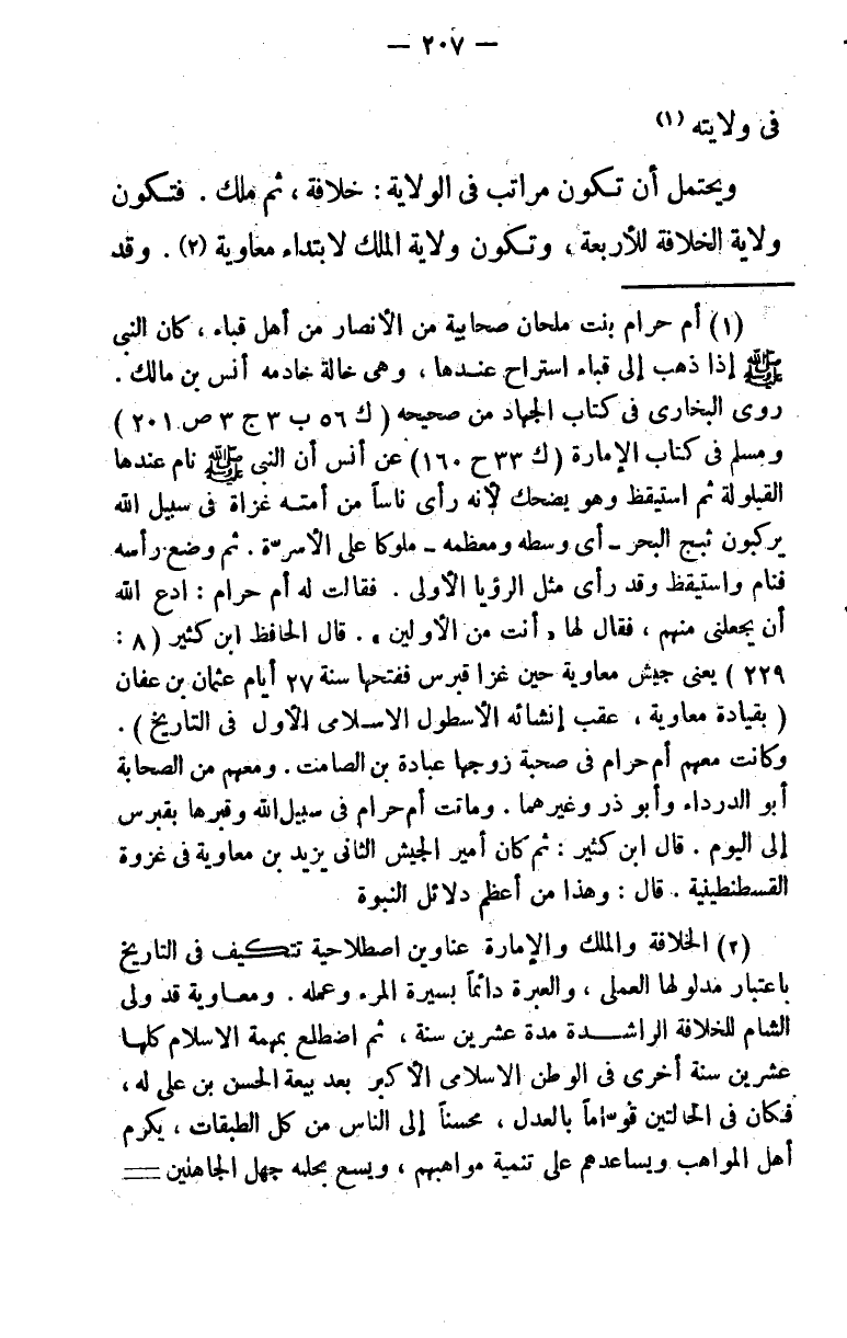 (¬2) الخلافة والملك والإمارة عناوين اصطلاحية تتكيف في التاريخ باعتبار مدلولها العملي، والعبرة دائما بسيرة المرء وعمله. ومعاوية قد ولي الشام للخلافة الراشدة مدة عشرين سنة، ثم اضطلع بمهمة الإسلام كلها عشرين سنة أخرى في الوطن الإسلامي الأكبر بعد بيعة الحسن بن علي له، فكان في الحالتين قَوَّاما بالعدل، محسنا إلى الناس من كل الطبقات، يكرم أهل المواهب ويساعدهم على تنمية مواهبهم، ويسع بحلمه جهل الجاهلين فيعالج بذلك نقائصهم، ويلتزم في الجميع أحكام الشريعة المحمدية بحزم ورفق ومثابرة وإيمان. يؤمهم في صلواتهم ويوجههم في مجتمعهم ومرافقهم ويقودهم في حروبهم. وفي منهاج السنة 3: 185 والمنتقى منه ص 389 قول الصحابي الجليل أبي الدرداء لأهل الشام " ما رأيت أحدا أشبه صلاة بصلاة رسول الله صلى الله عليه وسلم من إمامكم هذا " يعني معاوية. وقد رأيت في ص 205 قول الأعمش للذين ذكروا عنده عمر بن عبد العزيز وعدله. " كيف لو أدركتم معاوية؟ " قالوا في حلمه؟ قال: " لا والله، بل في عدله ". وقد بلغ من استقامته على جادة الإسلام أن قال فيه أمثال قتادة ومجاهد وأبي إسحاق السبيعي - وكلهم من الأئمة الأعلام -: كان معاوية هو المهدي (انظر ص 205) . والذي يتتبع سيرة معاوية في حكمه يرى أن حكومته في الشام كانت حكومة مثالية في العدل والتراحم والتآسي، لم يخير بين الطيب والأطيب إلا اختار الأطيب على الطيب. فإذا كان هذا المسلك في أربعين سنة يؤهل الأمير المسلم للخلافة على المسلمين وقد ارتضوه لذلك واغتبطوا به فهو خليفة، ومن سماه ملكا لا يستطيع أن يكابر في أنه من أرحم ملوك الإسلام وأصلحهم، كنا أيام طلب العلم في القسطنطينية في مجلس للطلبة يتناقشون فيه موضوع سيرة معاوية وخلافته. وكان ذلك في أيام السلطان عبد الحميد. فوقف صديقي الشهيد السعيد عبد الكريم قاسم الخليل - وكان شيعيا - فقال: " أنتم تسمون سلطاننا خليفة، وأنا أخوكم الشيعي أعلن أن يزيد بن معاوية كان بسيرته الطيبة أحق بالخلافة وأصدق عملا بالشرع المحمدي من خليفتنا، فكيف بأبيه معاوية ". على أن معاوية كان يقول عن نفسه - فيما رواه خيثمة عن هارون بن معروف عن ضمرة عن ابن شوذب -: " أنا أول الملوك وآخر خليفة ". وتقدم في ص 77 حديث معمر عن الزهري " أن معاوية عمل سنتين عمل عمر ما يخرم فيه ". وقد أشرنا هناك إلى اختلاف البيئة وتأثيره في أنظمة الحكم، بل إن معاوية نفسه ذكر ذلك لعمر لما قدم عمر الشام وتلقاه معاوية في موكب عظيم، فاستنكر عمر ذلك، واعتذر له معاوية بقوله: إنا بأرض جواسيس العدو فيها كثيرة، فيجب أن نظهر من عز السلطان ما يكون فيه عز للإسلام وأهله ونرهبهم به ". فقال عبد الرحمن بن عوف لعمر: " ما أحسن ما صدر عما أوردته فيه يا أمير المؤمنين "، فقال عمر: من أجل ذلك جشمناه ما جشمناه " (البداية والنهاية 8: 124 - 125) ، وسيرة عمر التي حاول معاوية أن يسير عليها سنتين كانت المثل الأعلى في بيته، وكان يزيد يحدث نفسه بالتزامها. روى ابن أبي الدنيا عن أبي كريب محمد بن العلاء الهمداني الحافظ عن رشدين المصري عن عمرو بن الحارث الأنصاري المصري عن بكير بن الأشج المخزومي المدني ثم المصري أن معاوية قال ليزيد: كيف تراك فاعلا إن وليت؟ قال: كنت والله يا أبة عاملا فيهم عمل عمر بن الخطاب. فقال معاوية: سبحان الله يا بني، والله لقد جهدت على سيرة عثمان فما أطقتها، فكيف بك وسيرة عمر (ابن كثير 8: 229) . والذين لا يعرفون سيرة معاوية يستغربون إذا قلت لهم: إنه كان من الزاهدين والصفوة الصالحين. روى الإمام أحمد في كتاب الزهد (ص 172 طبع مكة) عن أبي شبل محمد بن هارون عن حسن بن واقع عن ضمرة بن ربيعة القرشي عن علي بن أبي حملة عن أبيه قال: رأيت معاوية على المنبر بدمشق يخطب الناس وعليه ثوب مرقوع. وأخرج ابن كثير (8: 134) عن يونس بن ميسر الحميري الزاهد (وهو من شيوخ الإمام الأوزاعي) قال: رأيت معاوية في سوق دمشق، وهو مردف وراءه وصيفا وعليه قميص مرقوع الجيب، يسير في أسواق دمشق، وكان قواد معاوية وكبار أصحابه يستهدونه ملابسه للتبرك بها، فكان إذا حضر أحدهم إلى المدينة وعليه هذ