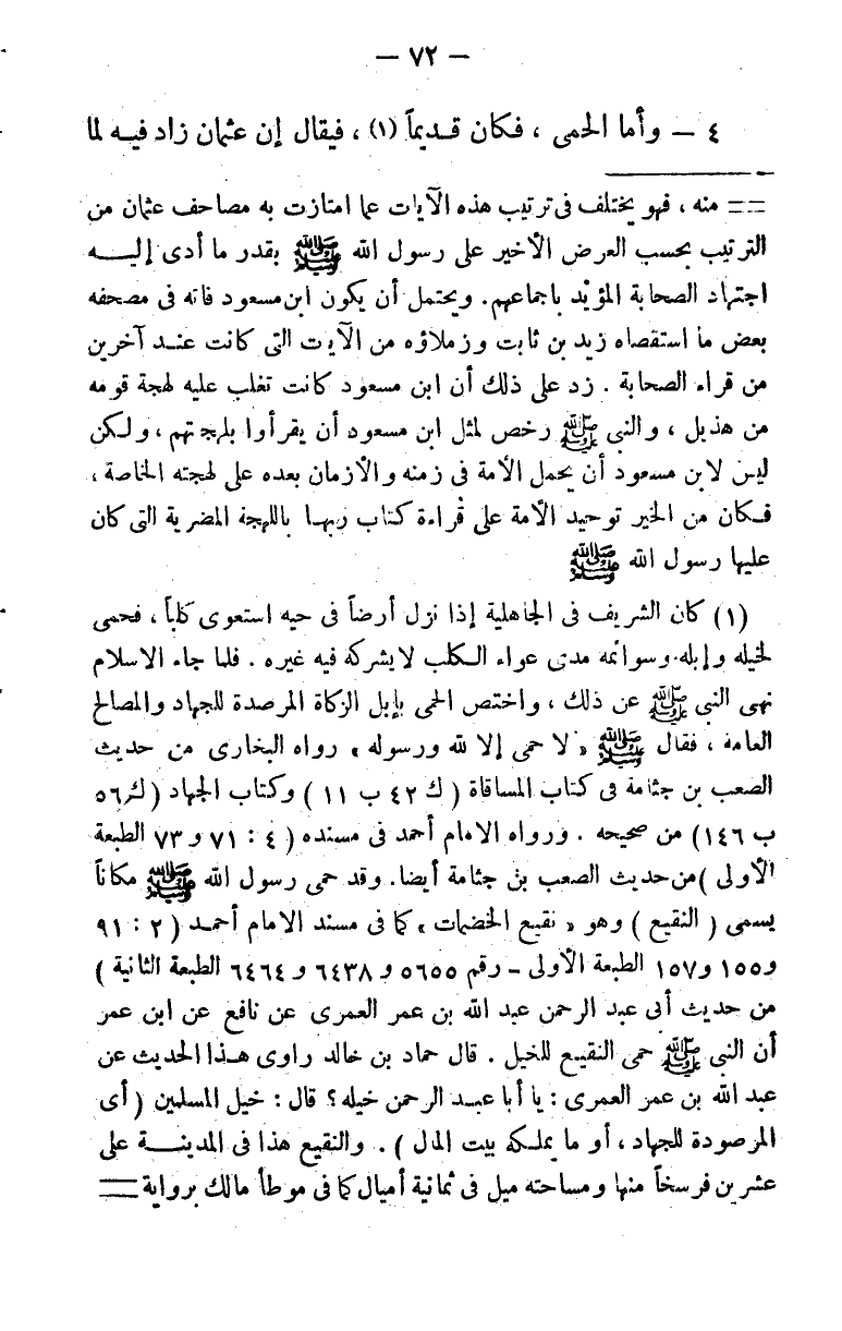 4 - وأما الحِمى، فكان قديما (¬1) فيقال إن عثمان زاد فيه لما