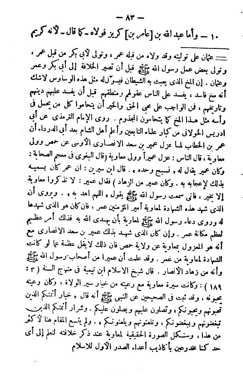 10 - وأما عبد الله بن [عامر بن] كُريز فولاه - كما قال -