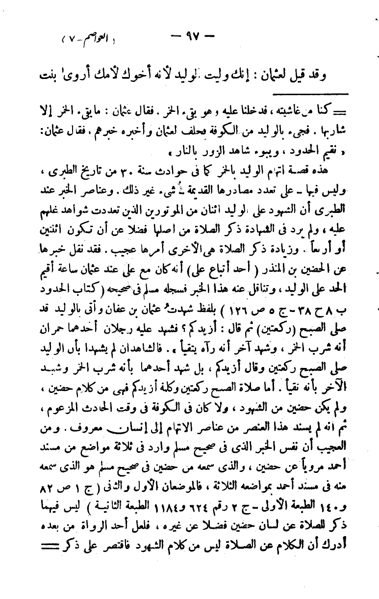 وقد قيل لعثمان: إنك وليت الوليد لأنه أخوك لأمك أروى بنت كُريز