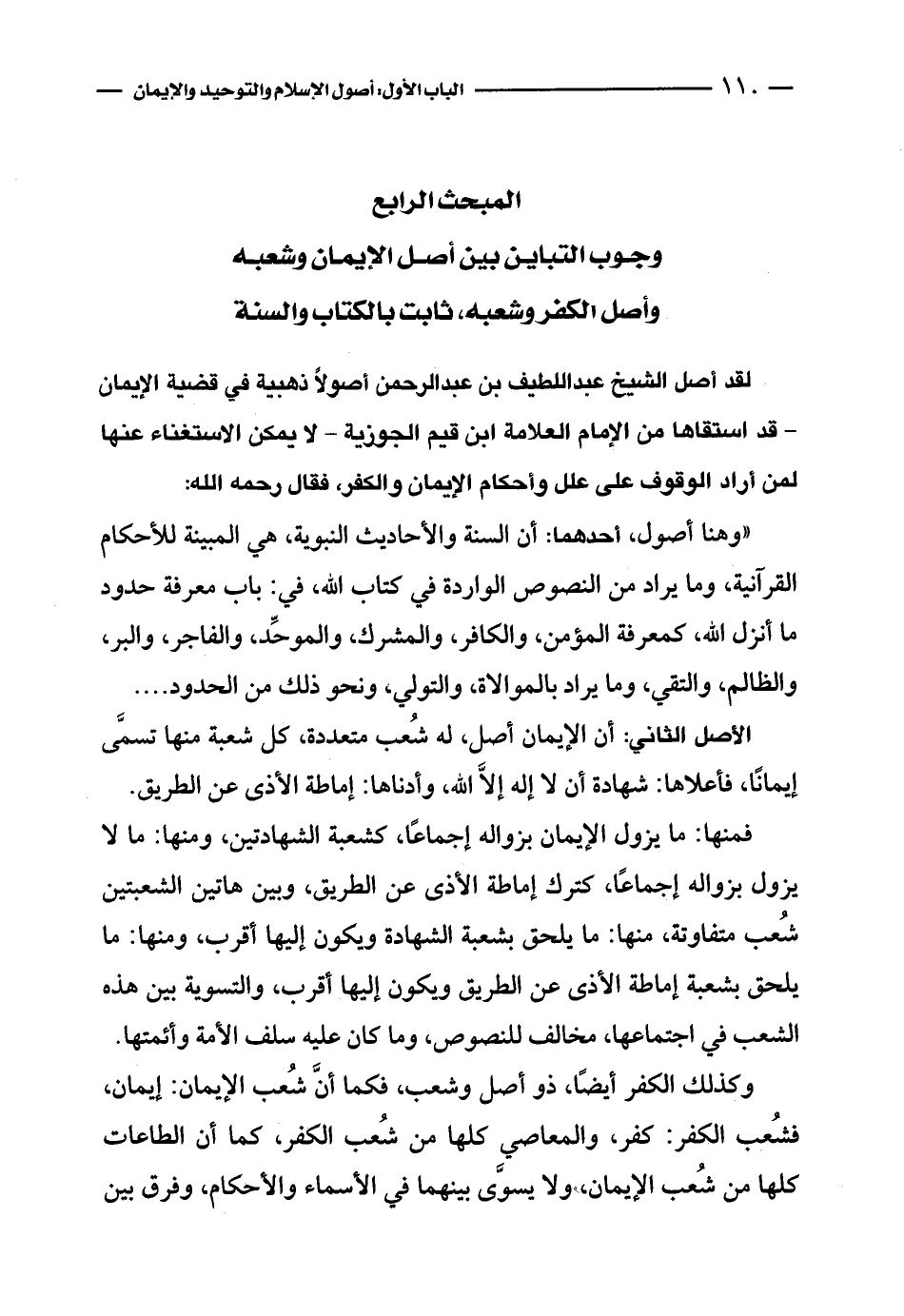 وجوب التباين بين أصل الإيمان وشعبه وأصل الكفر وشعبه، ثابت بالكتاب والسنة