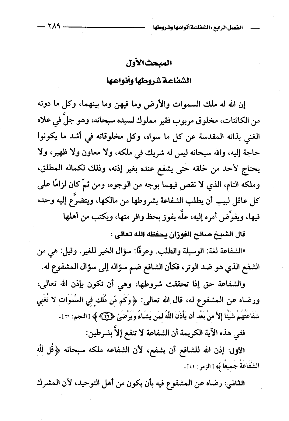 إن الله له ملك السموات والأرض وما فيهن وما بينهما، وكل ما دونه من الكائنات، مخلوق مربوب فقير مملوك لسيده سبحانه، وهو جلَّ في علاه الغني بذاته المقدسة عن كل ما سواه، وكل مخلوقاته في أشد ما يكونوا حاجة إليه، والله سبحانه ليس له شريك في ملكه، ولا معاون ولا ظهير، ولا يحتاج لأحد من خلقه حتى يشفع عنده بغير إذنه، وذلك لكماله المطلق، وملكه التام، اللذين لا نقص فيهما بوجه من الوجوه، ومن ثم كان لزامًا على كل عاقل لبيب أن يطلب الشفاعة بشروطها من مالكها، ويتضرَّع إليه وحده فيها، ويفوِّض أمره إليه، علَّه يفوز بحظ وافر منها، ويكتب من أهلها.