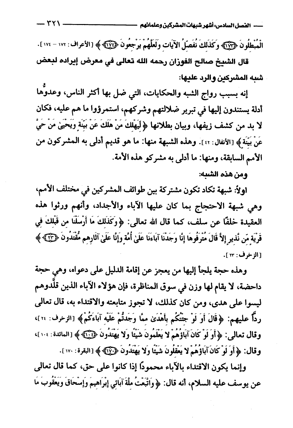 قال الشيخ صالح الفوزان رحمه الله تعالى في معرض إيراده لبعض شبه المشركين والرد عليها:
