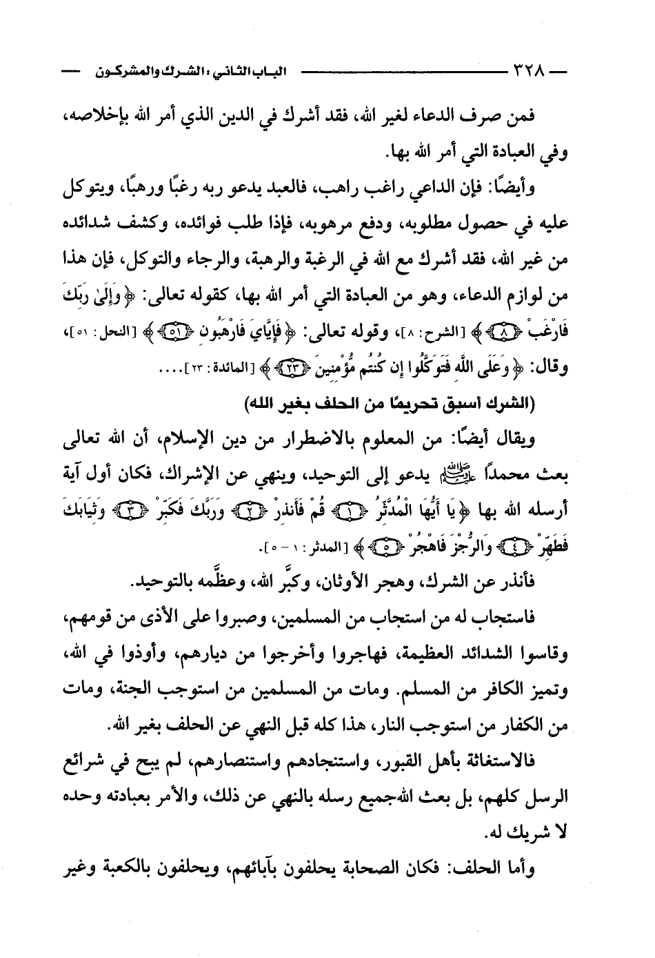 وأيضًا: فإن الداعي راغب راهب، فالعبد يدعو ربه رغبًا ورهبًا، ويتوكل عليه في حصول مطلوبه، ودفع مرهوبه، فإذا طلب فوائده، وكشف شدائده من غير الله، فقد أشرك مع الله في الرغبة والرهبة، والرجاء والتوكل، فإن هذا من لوازم الدعاء، وهو من العبادة التي أمر الله بها، كقوله تعالى: {وَإِلَى رَبِّكَ فَارْغَبْ} [الشرح: 8]، وقوله تعالى: {فَإيَّايَ فَارْهَبُونِ} [النحل: 51]، وقال: {وَعَلَى اللهِ فَتَوَكَّلُواْ إِن كُنتُم مُّؤْمِنِينَ} [المائدة: 23] ....