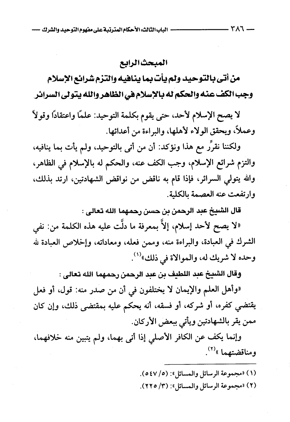قال الشيخ عبد الرحمن بن حسن رحمهما الله تعالى: