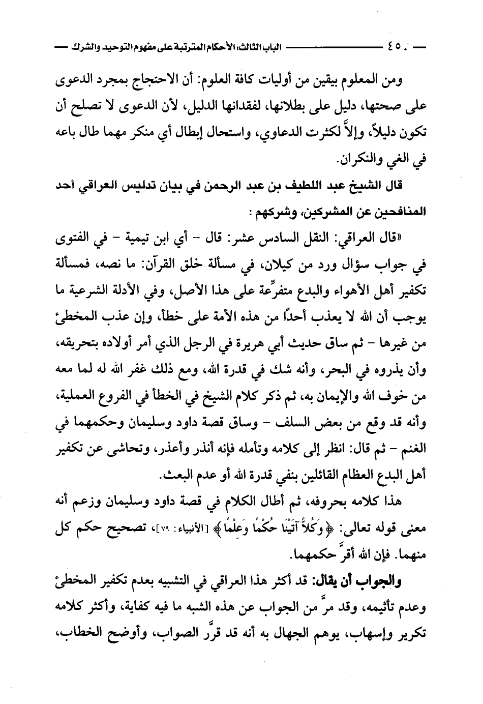 قال الشيخ عبد اللطيف بن عبد الرحمن في بيان تدليس العراقي أحد المنافحين عن المشركين، وشركهم: