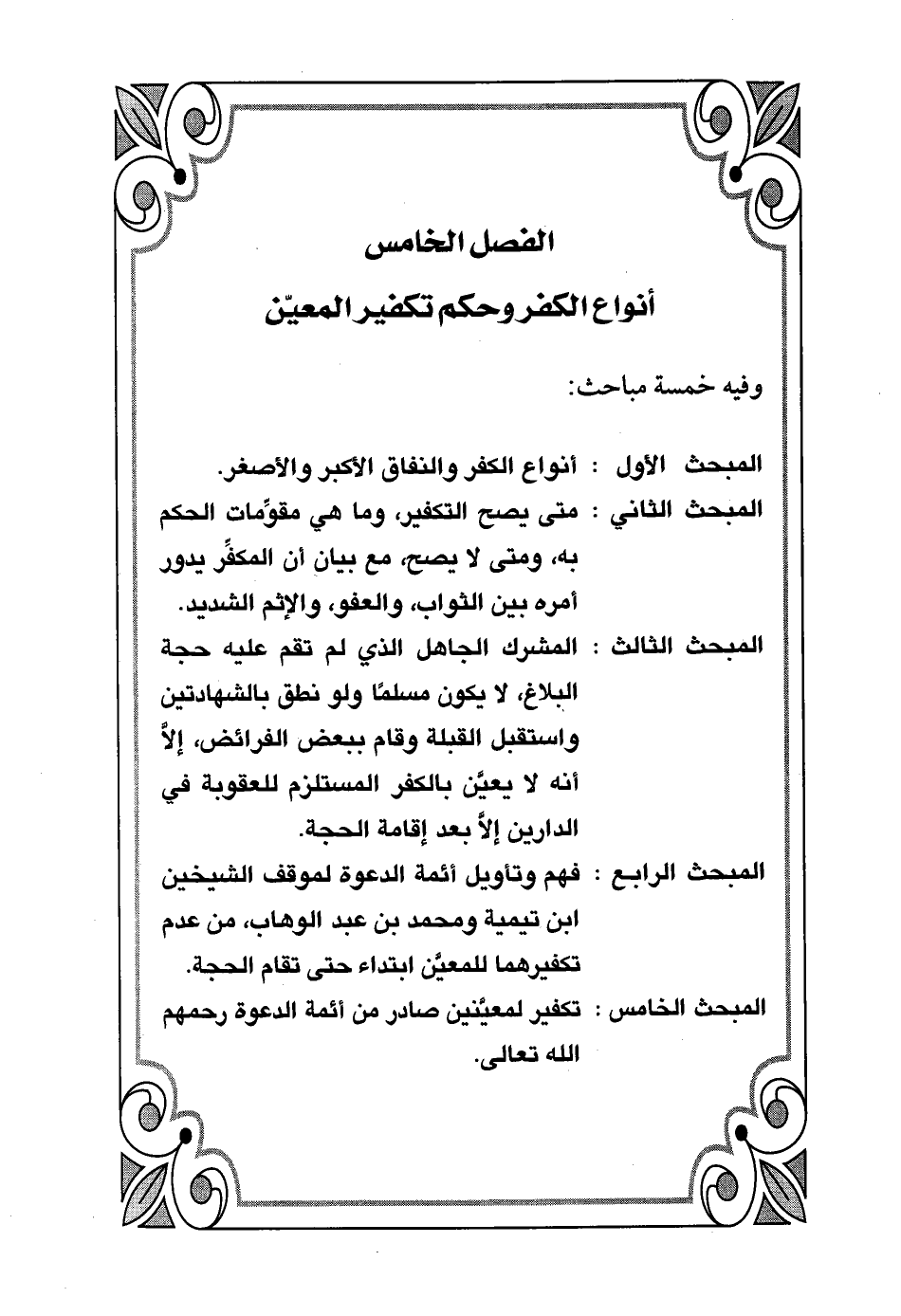 المبحث الخامس: تكفير لمعيَّنين صادر من أئمة الدعوة رحمهم الله تعالى.