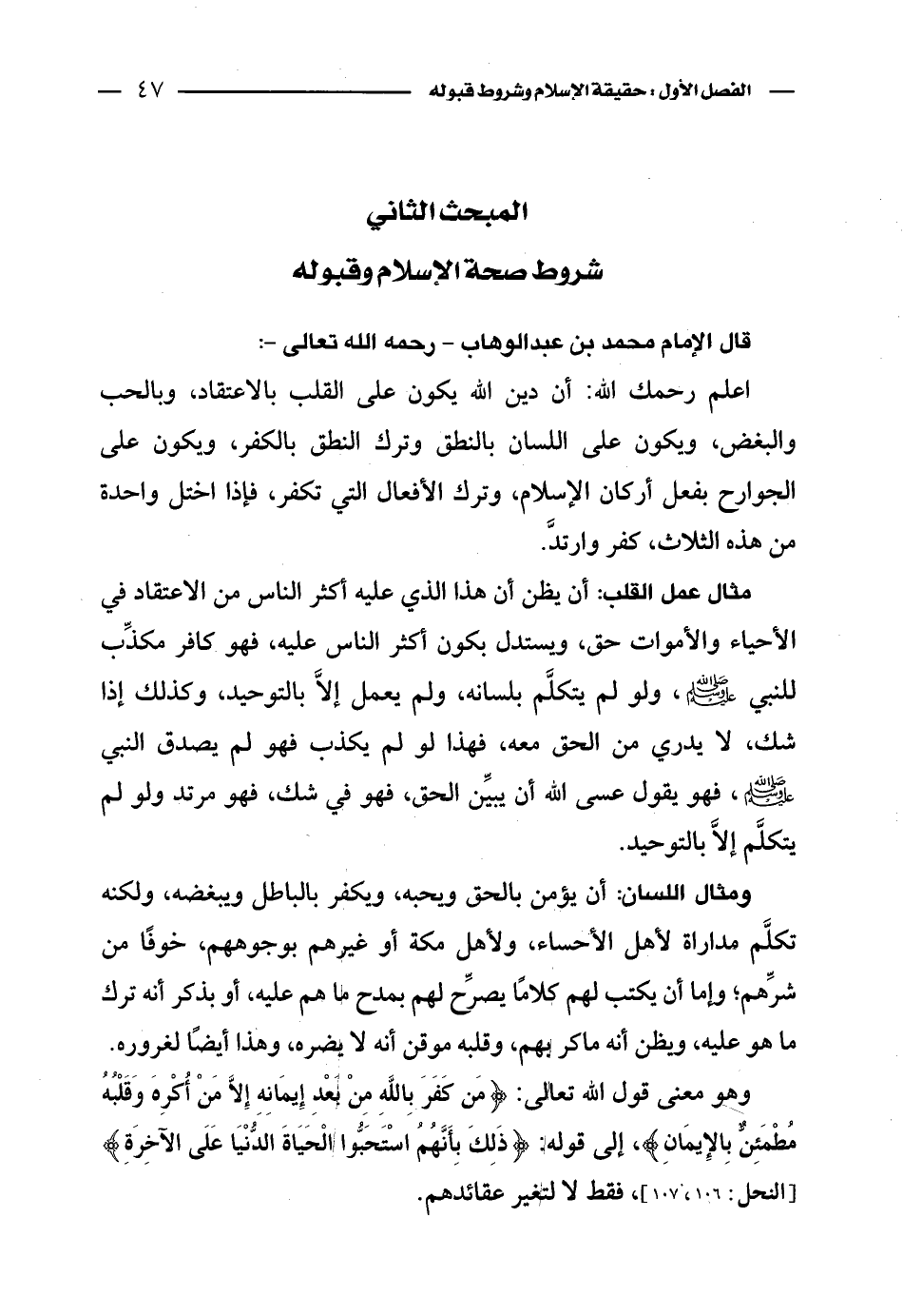 قال الإمام محمد بن عبد الوهاب - رحمه الله تعالى -: