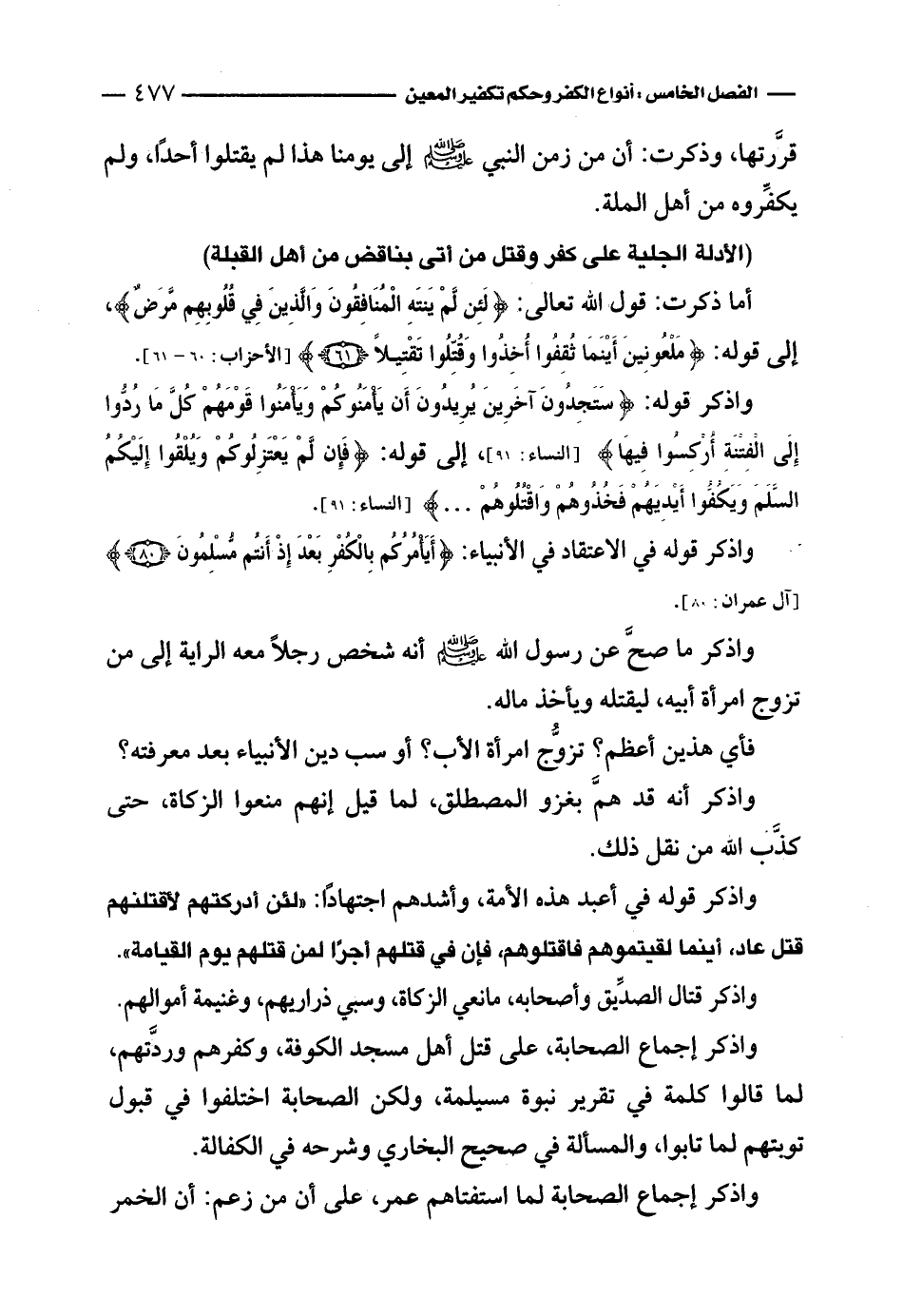 (الأدلة الجلية على كفر وقتل من أتى بناقض من أهل القبلة)