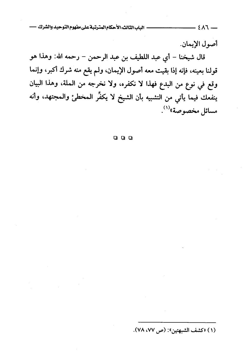(¬1) «كشف الشبهتين»: (ص 77، 78).
