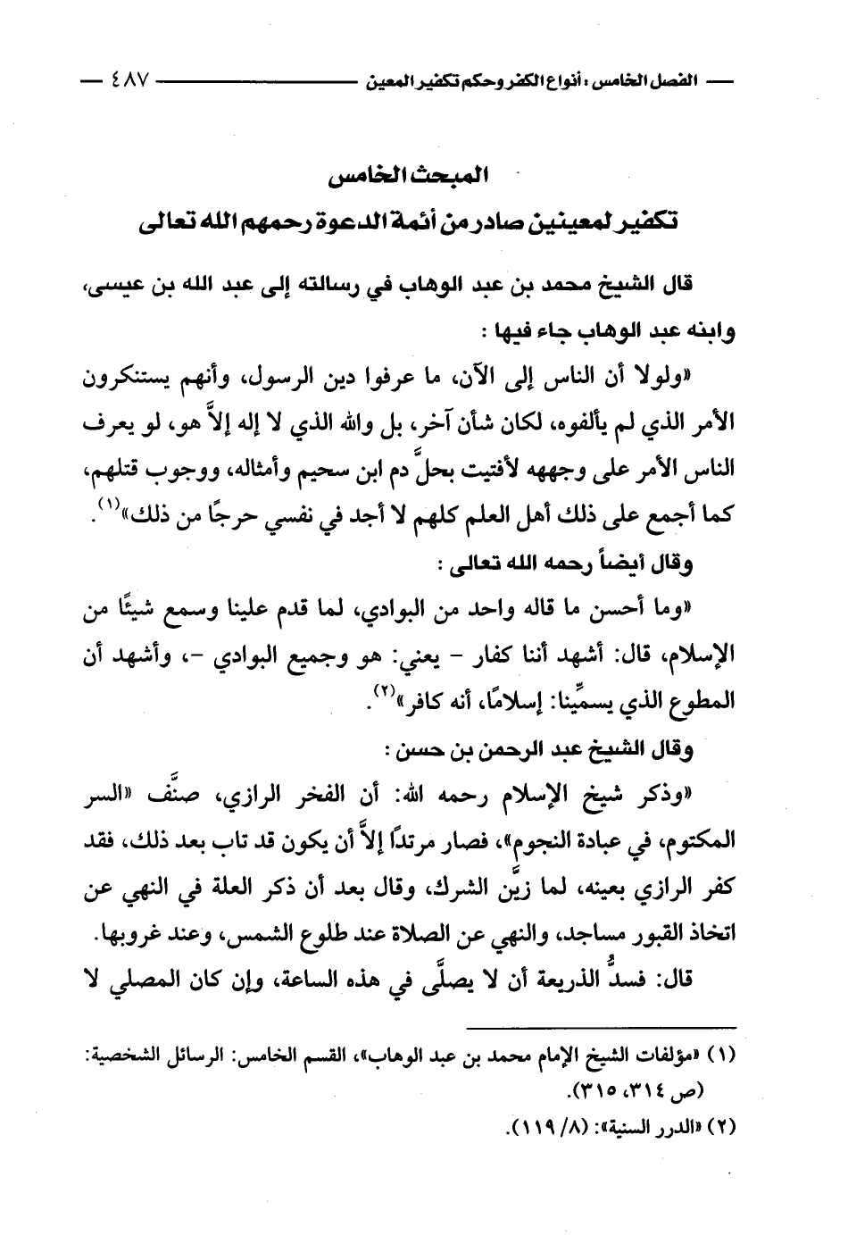 تكفير لمعينين صادر من أئمة الدعوة رحمهم الله تعالى