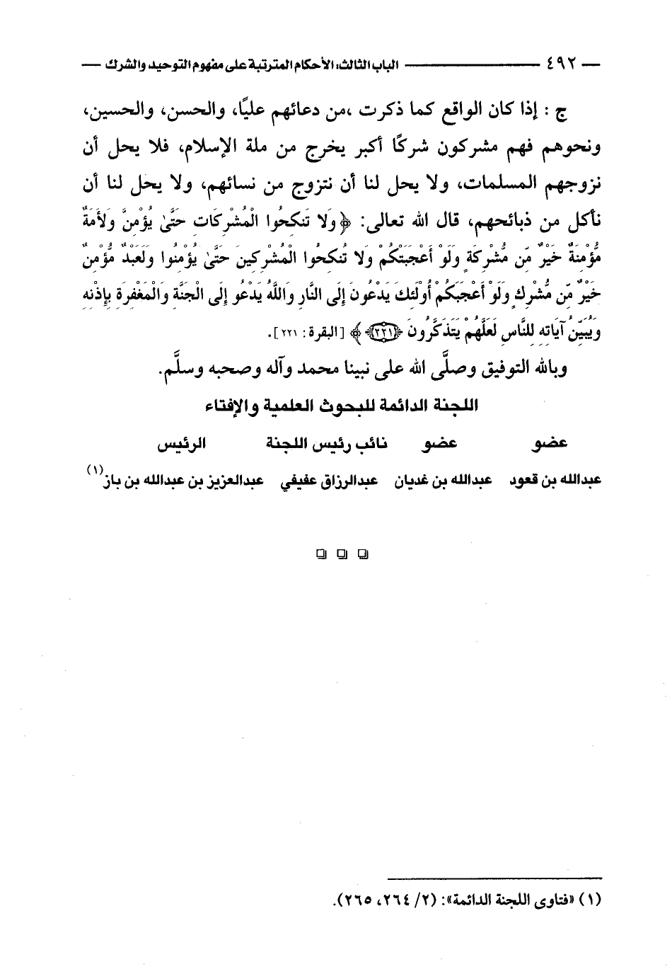 (¬1) «فتاوى اللجنة الدائمة»: (2/ 264، 265).