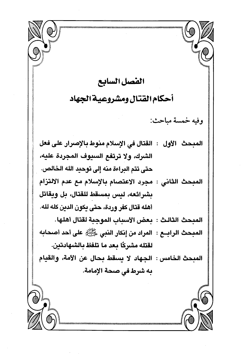 المبحث الخامس: الجهاد لا يسقط بحال عن الأمة، والقيام به شرط في صحة الإمامة.