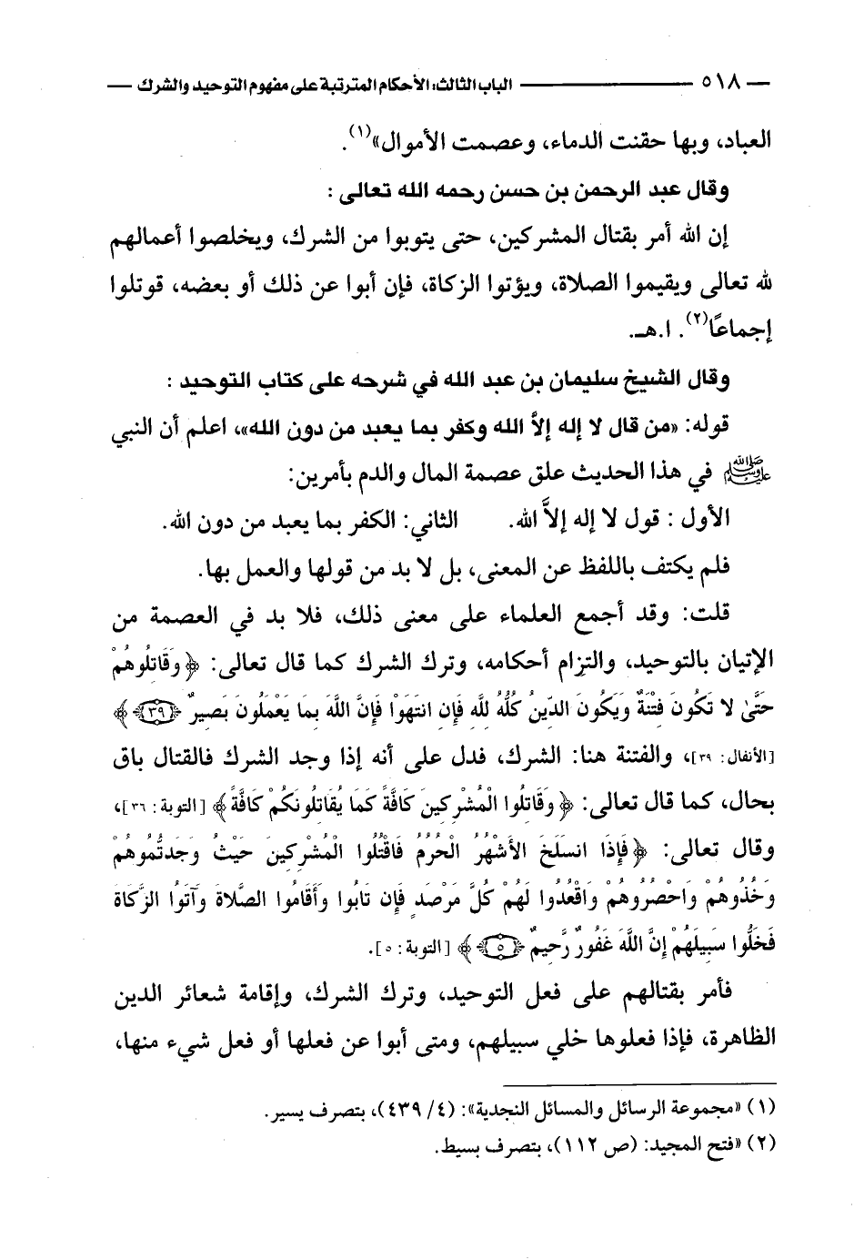 (¬2) «فتح المجيد: (ص 112)، بتصرف بسيط.