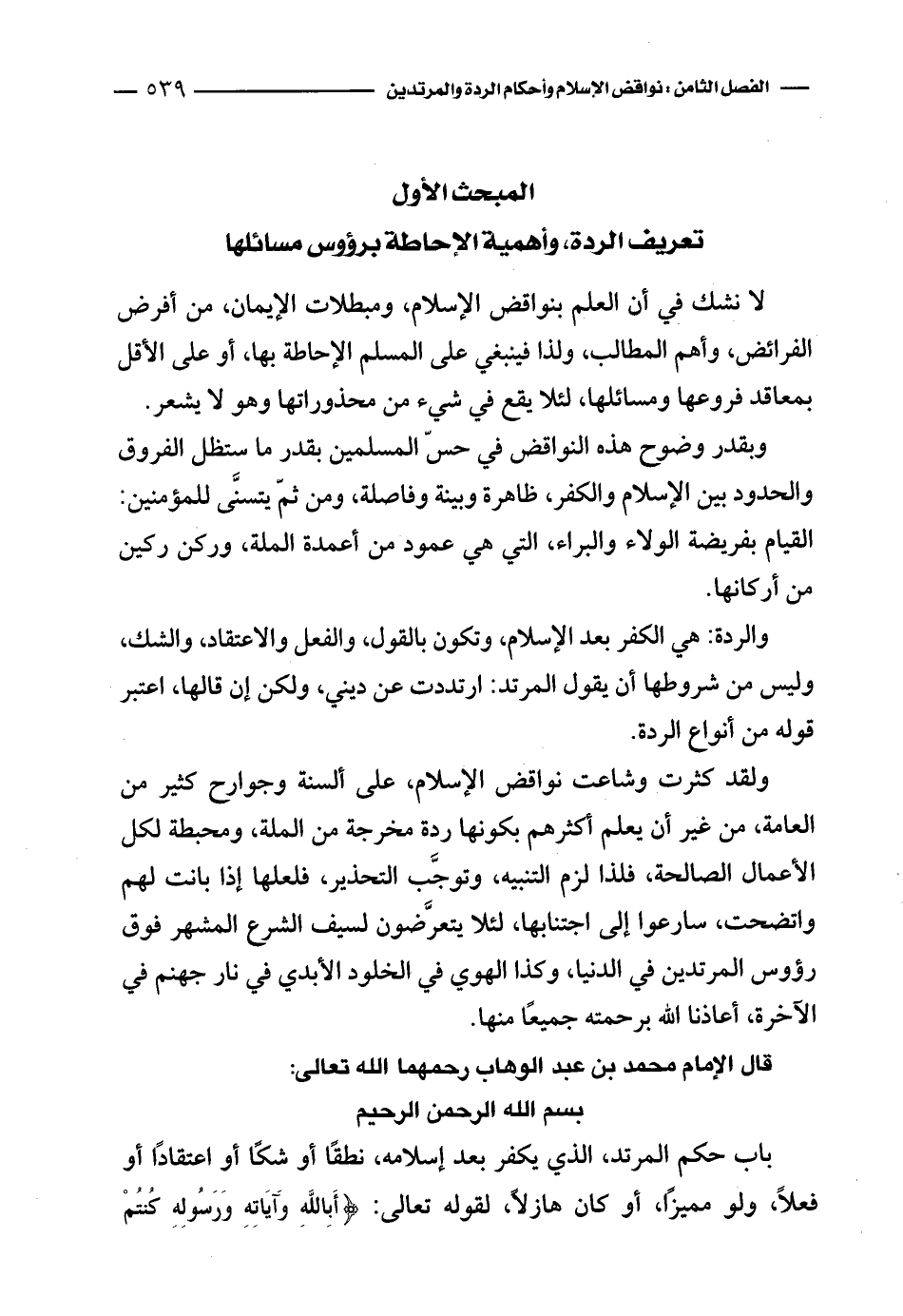 قال الإمام محمد بن عبد الوهاب رحمهما الله تعالى: