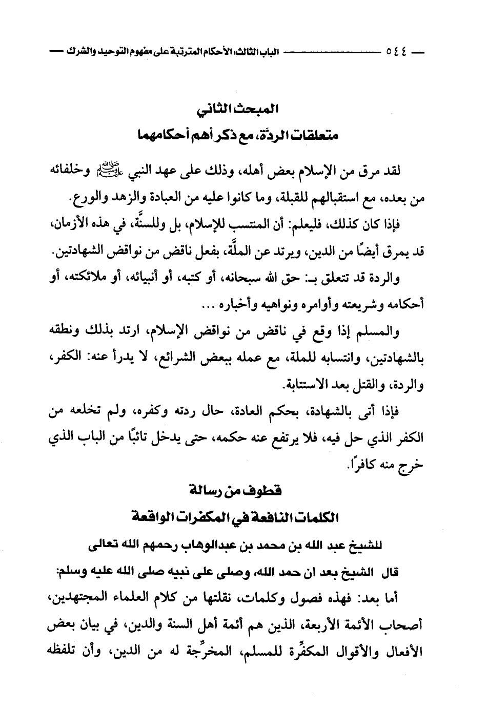 للشيخ عبد الله بن محمد بن عبد الوهاب رحمهم الله تعالى
