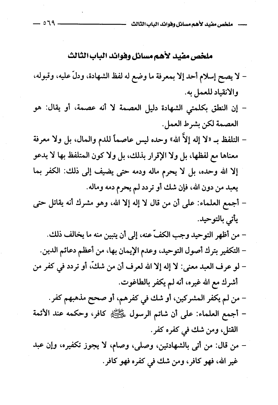 ملخص مفيد لأهم مسائل وفوائد الباب الثالث