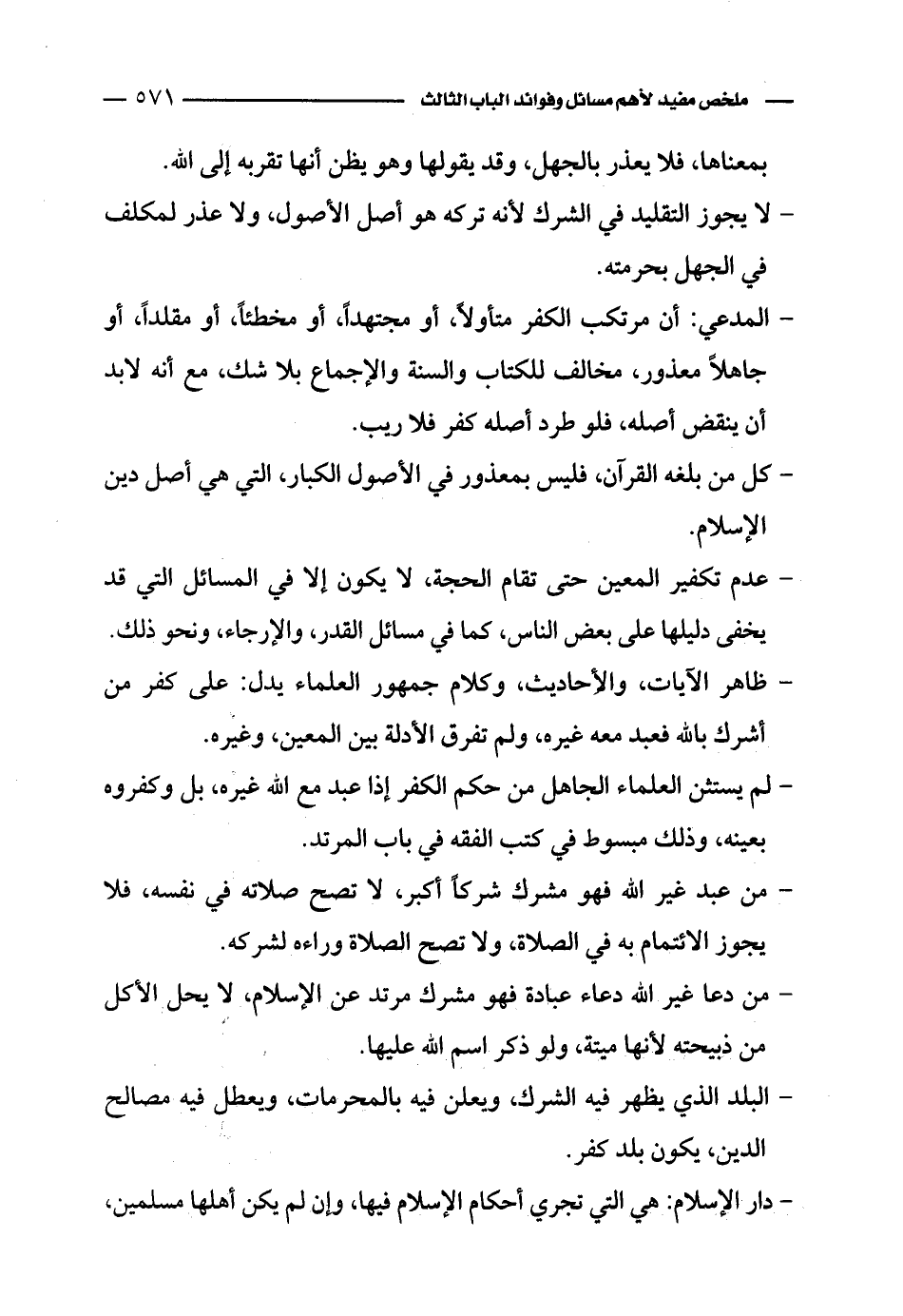 - عدم تكفير المعين حتى تقام الحجة، لا يكون إلا في المسائل التي قد يخفى دليلها على بعض الناس، كما في مسائل القدر، والإرجاء، ونحو ذلك.