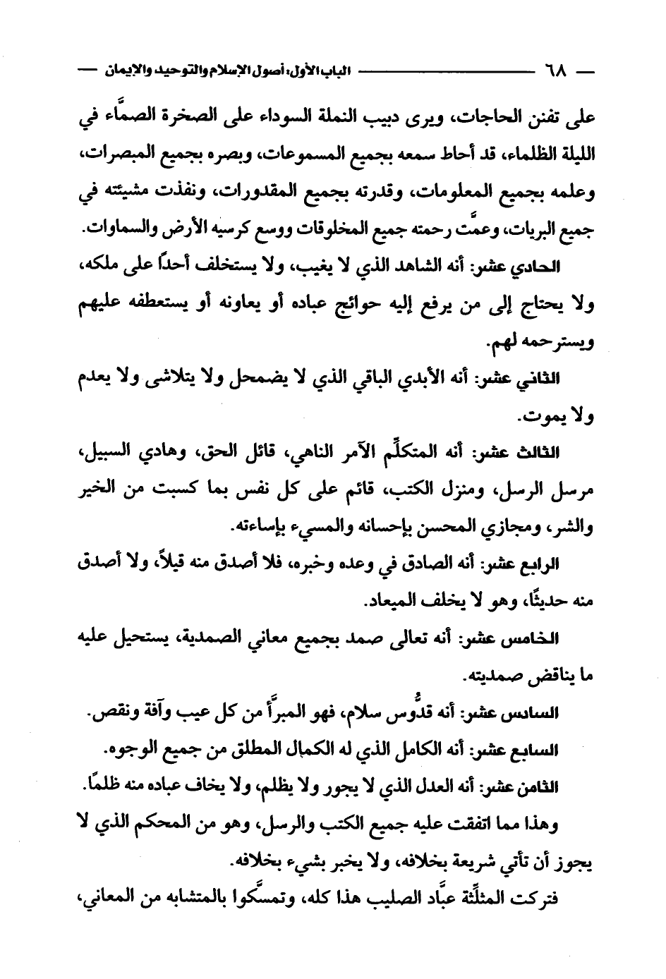 الخامس عشر: أنه تعالى صمد بجميع معاني الصمدية، يستحيل عليه ما يناقض صمديته.